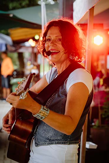 Mit 18 dann die erste eigene Tanzmusik mit der Band „Holiday“, der sie über 20 Jahre bis zur Auflösung treu blieb. Mit der Band rockte sie die Schützenfeste im Kreis Höxter. Auch als Sozialarbeiterin, Reittherapeutin und Mutter von drei Kindern, hat sie nie mit Musikmachen aufgehört. Eigene Soloprojekte, Rockbands, Bigband, Tanzband „Dolce Vita“ und Aushilfen bei vielen Partybands lassen trotzdem noch Zeit, um ein Instrument zu erlernen.